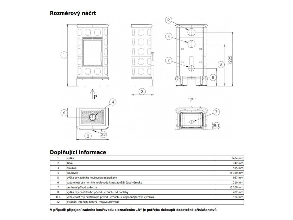 - Priemer dymovodu: 150 mm (horné alebo zadné pripojenie)