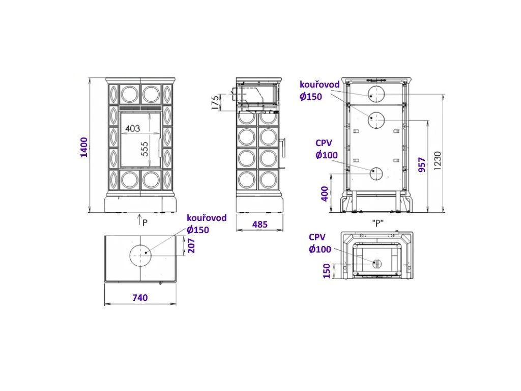 - priemer dymovodu: 150 mm