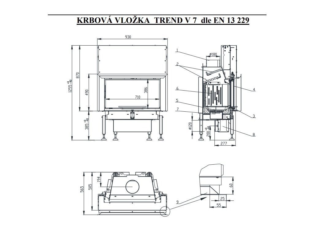 Krbová vložka BeF Home Trend V 7 s výsuvnými dveirkami – výsuvný systém dverí, ktorý zaisťuje maximálnu tesnosť a komfort obsluhy (dvere u tohto systému idú pri posuve súbežne s rámom a v poslednej fáze sa pritlačia po celom obvode k rámu a tým zaistia maximálnu tesnosť ). Vložka má menovitý výkon 9 kW regulovateľný v rozmedzí 6–11 kW. Oceľové ohnisko je vyložené akumulačným materiálom carconom, ktorý umožňuje vysoký žiar v ohnisku, dlhé a čisté horenie, nízke emisie, čisté sklo a vyššia účinnosť = úspora paliva.