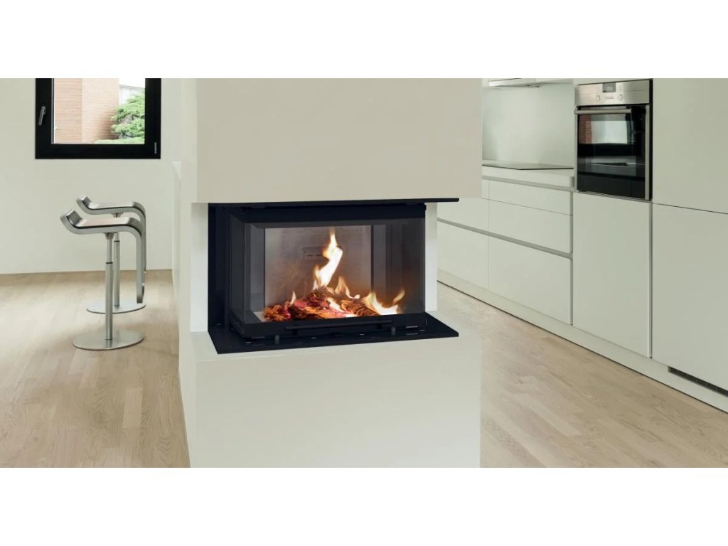Trojstranné delené sklo – poskytuje široký pohľad na plamene z viacerých strán