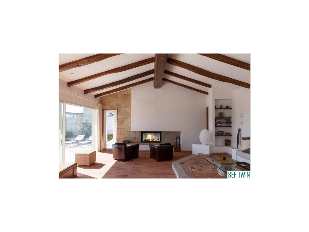 Ideálne riešenie pre moderné domácnosti – táto obojstranná krbová vložka umožňuje prikladanie paliva z technickej miestnosti. Z obývacej strany disponuje presklenými dvierkami s výsuvom nahor, zo zadnej strany má plné dvierka s bočným otváraním.