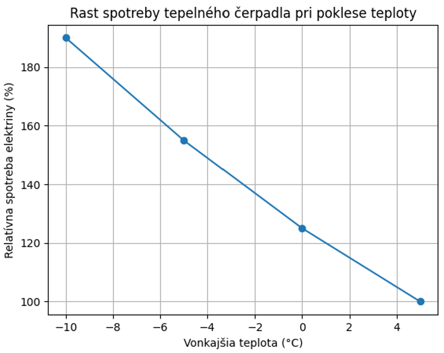 Ako rastie spotreba tepelného čerpadla pri poklese teploty