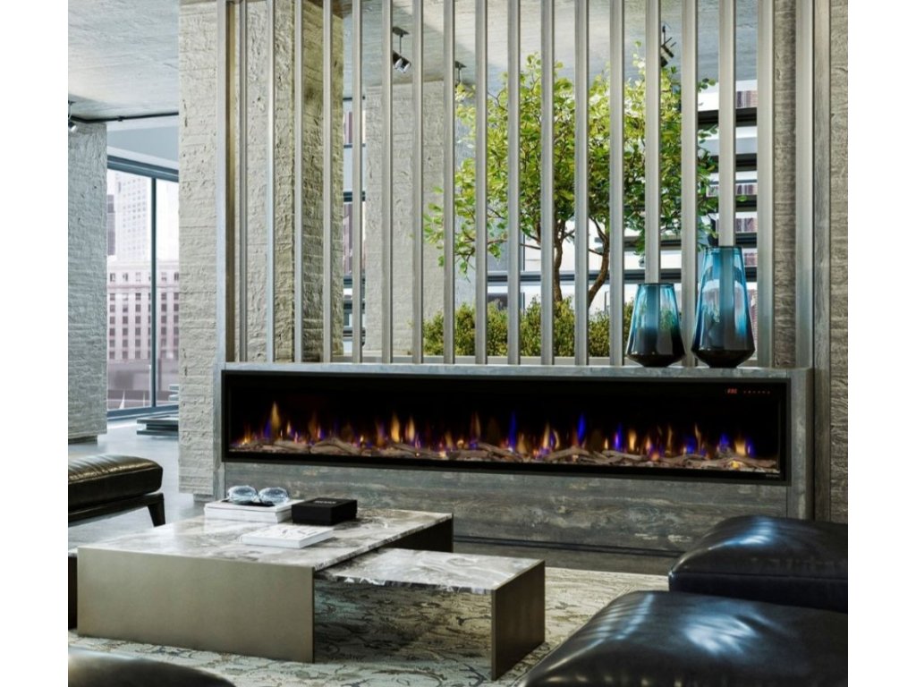 Model Ignite Evolve 100" je najväčší z celej série Dimplex Evolve, ktorá zahŕňa aj menšie verzie – 50" (130,6 cm), 60" (156 cm) a 74" (194,1 cm). Vďaka svojmu impozantnému formátu je ideálny do veľkých obývacích priestorov, komerčných objektov, hotelových lobby alebo moderných kancelárií.