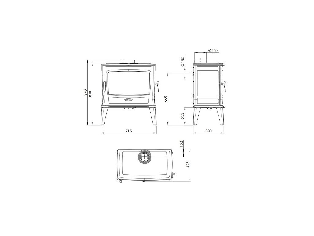 Priemer dymovodu: 150 mm (horný / zadný vývod)
