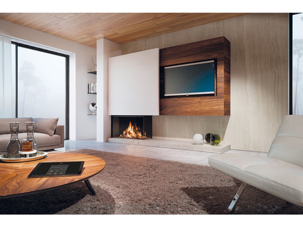 Pomocou inteligentného diaľkového ovládača s termostatom môžete presne nastaviť výšku a tvar plameňov na požadovanú teplotu. S bezplatnou aplikáciou DRU pre smartphone alebo tablet (iOS a Android) získate plnú kontrolu nad vaším krbom. Medzi možnosti patrí aj výber preferovaného tvaru plameňa.