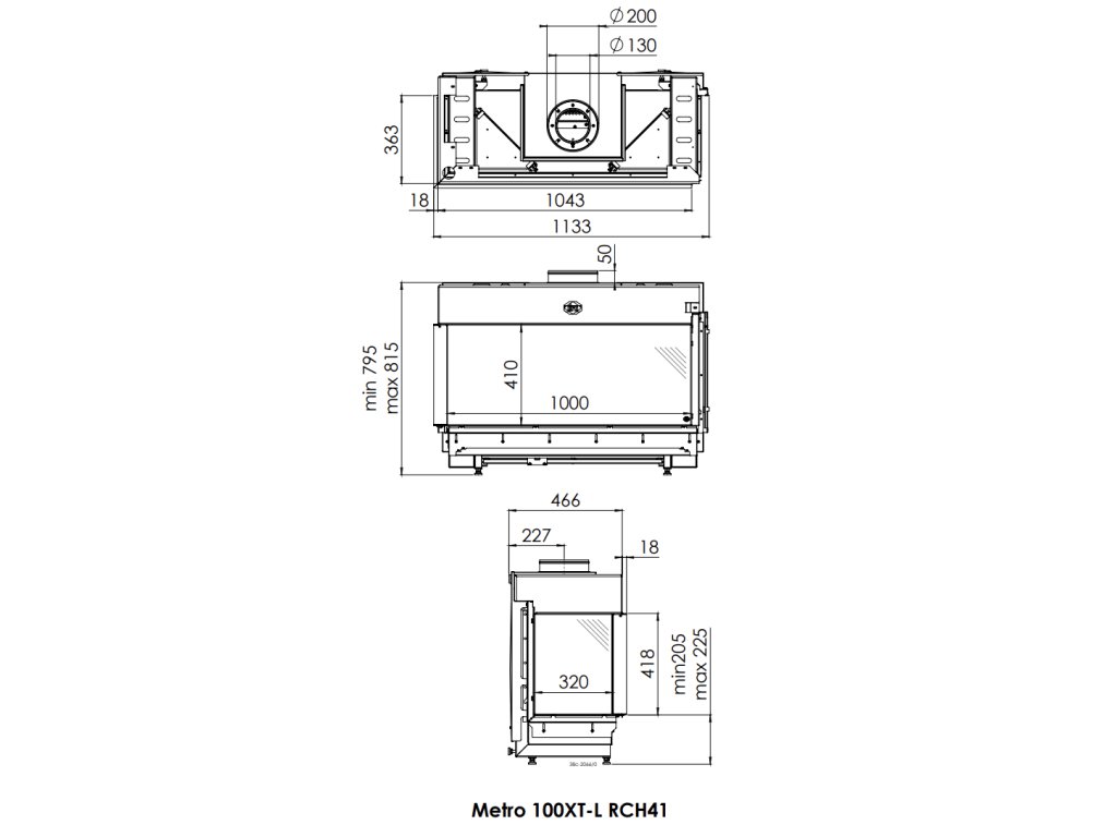 DRU Metro 100XT/2 Eco Wave ľavé prevedenie, ohnisko vermikulit - tmavý antracit, matný