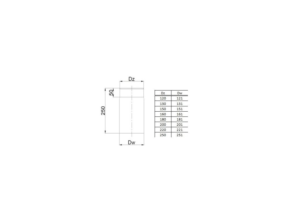 Čierna rúra z oceľového plechu hrúbky 2 mm s dĺžkou 250mm a priemerom ∅250mm na napojenie krbu do komína.