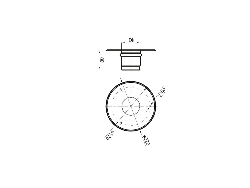 Dymovod ružica 80, s tesnením, oceľ čierna balené