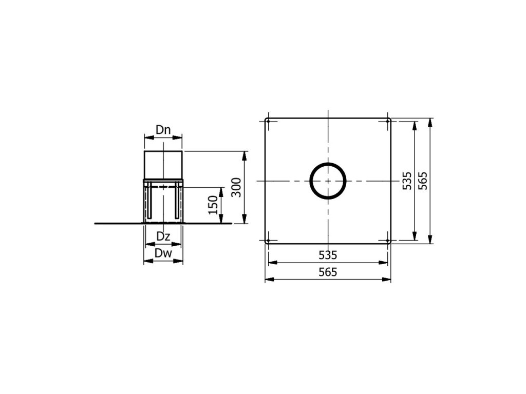 Dymovod štvorcová ružica s dvojitou zderou DN130, oceľ čierna oceľ čierna