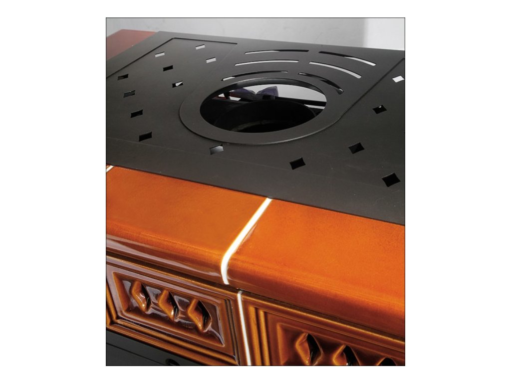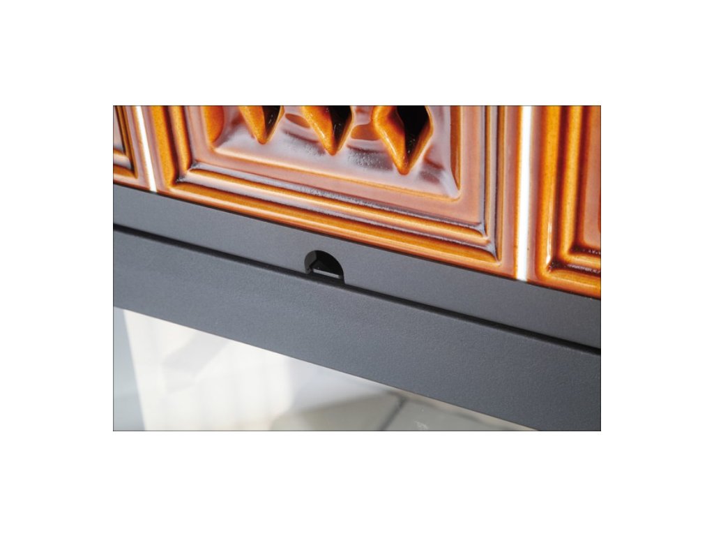 Moderná spaľovacia komora s terciálnym vzduchom dáva kachliam Matera tradičný obal. K dvierkam v nadčasovej čiernej farbe môžete zvoliť keramické kachlice v medovníkovej farbe alebo môžete siahnuť po odtieni slonová kosť.