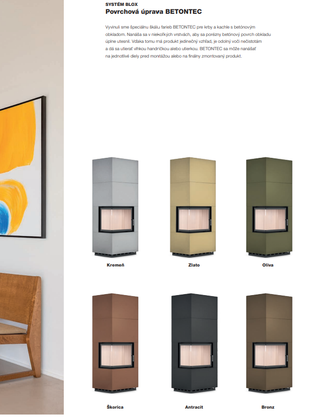 Modulárny akumulačný krb Hoxter BLOX je možné upraviť povrchovým náterom BETONTEC, ktorý dodá krbu finálny vzhľad a zároveň zvýši odolnosť povrchu.