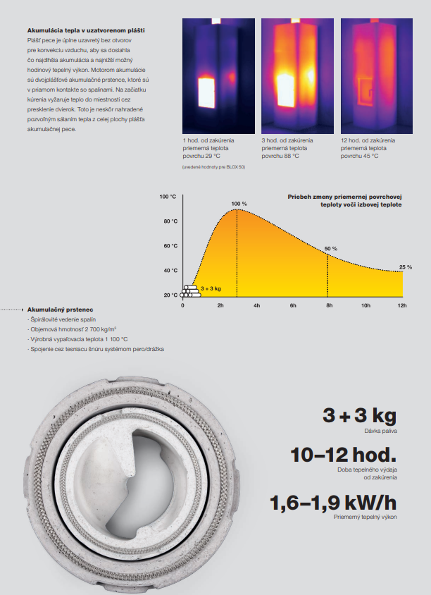 - až 12 hodín sálania tepla od zakúrenia