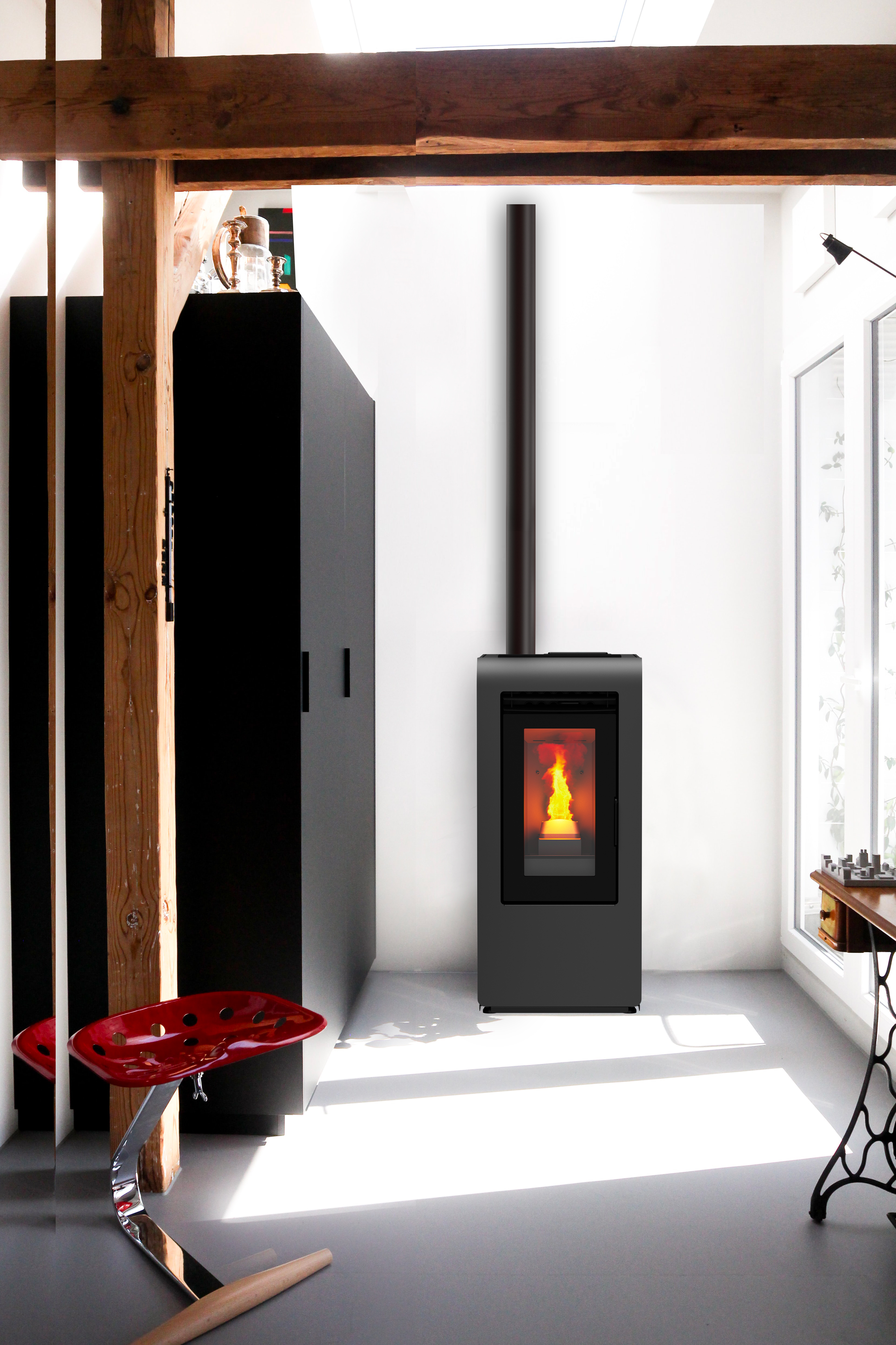 Model Lucia 8 ponúka možnosť bezdrôtového diaľkového ovládania, vďaka čomu je regulácia teploty jednoduchá a pohodlná. Veľká kapacita zásobníka umožňuje dlhú autonómiu kúrenia bez častého dopĺňania paliva.