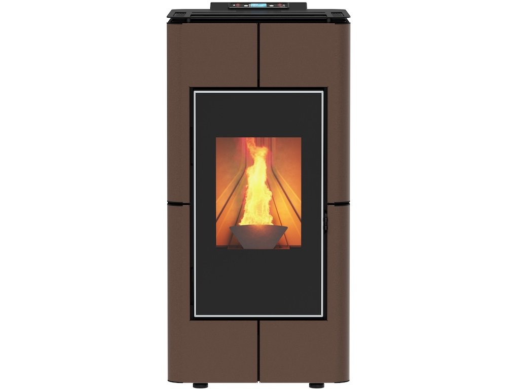 Model Kalor Ermetica 98 Nux 8 ponúka možnosť bezdrôtového diaľkového ovládania, vďaka čomu je regulácia teploty jednoduchá a pohodlná. Veľká kapacita zásobníka umožňuje dlhú autonómiu kúrenia bez častého dopĺňania paliva.