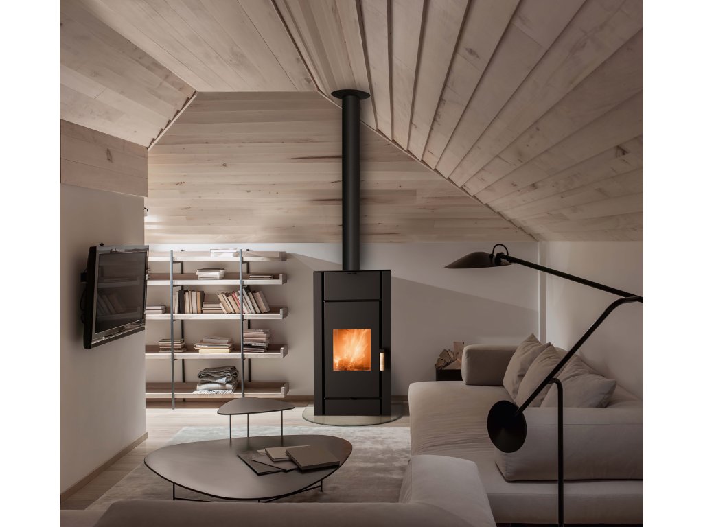 Spaľovacia komora je vystlaná vermikulitom, ktorý zvyšuje účinnosť spaľovania a predlžuje životnosť kachlí. Praktickým detailom je masívna drevená rukoväť, veľký zásobník na popol a horný dymovod, ktorý uľahčuje napojenie na komín.