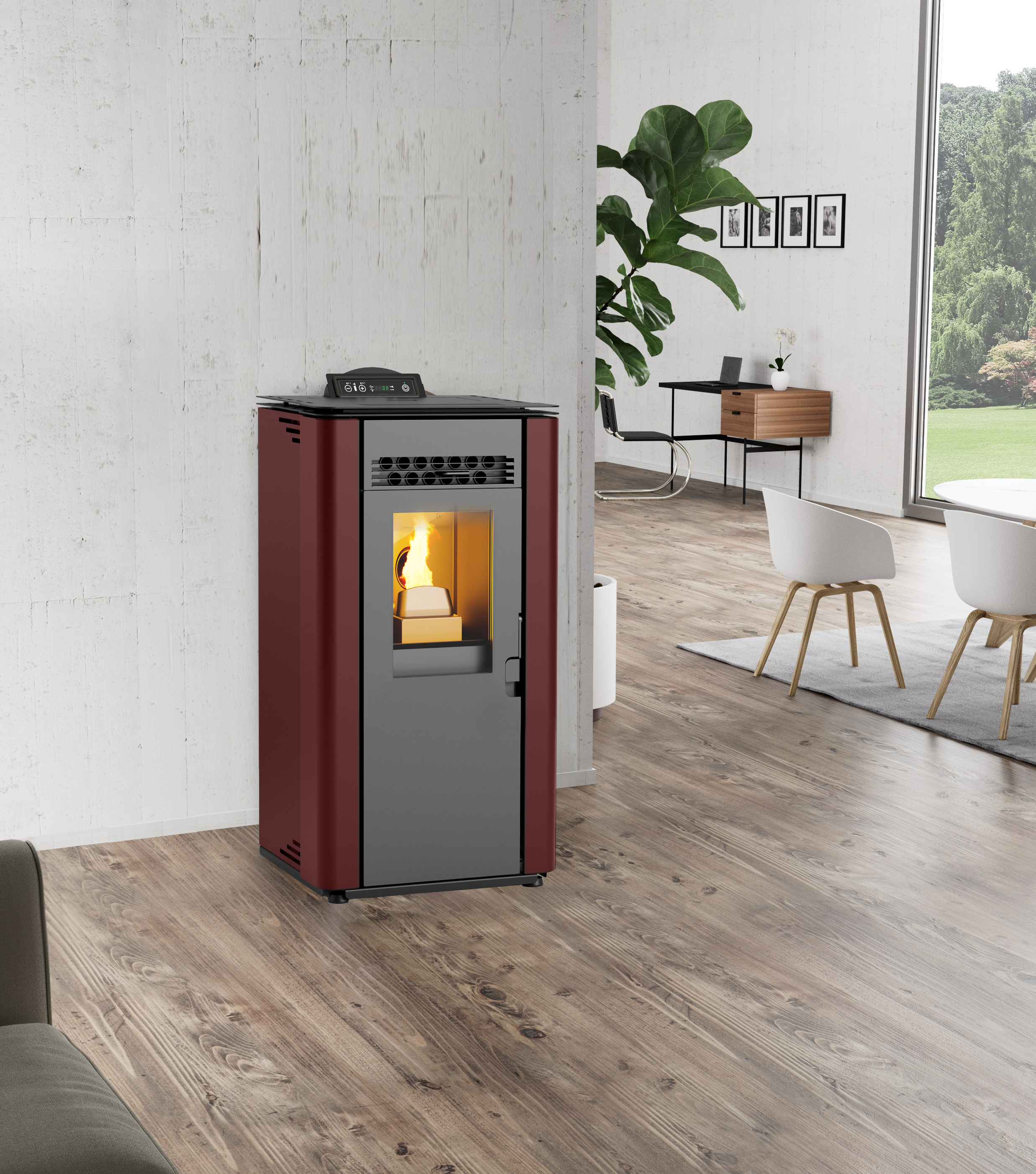Model Greta 8 ponúka možnosť bezdrôtového diaľkového ovládania, vďaka čomu je regulácia teploty jednoduchá a pohodlná. Veľká kapacita zásobníka umožňuje dlhú autonómiu kúrenia bez častého dopĺňania paliva.