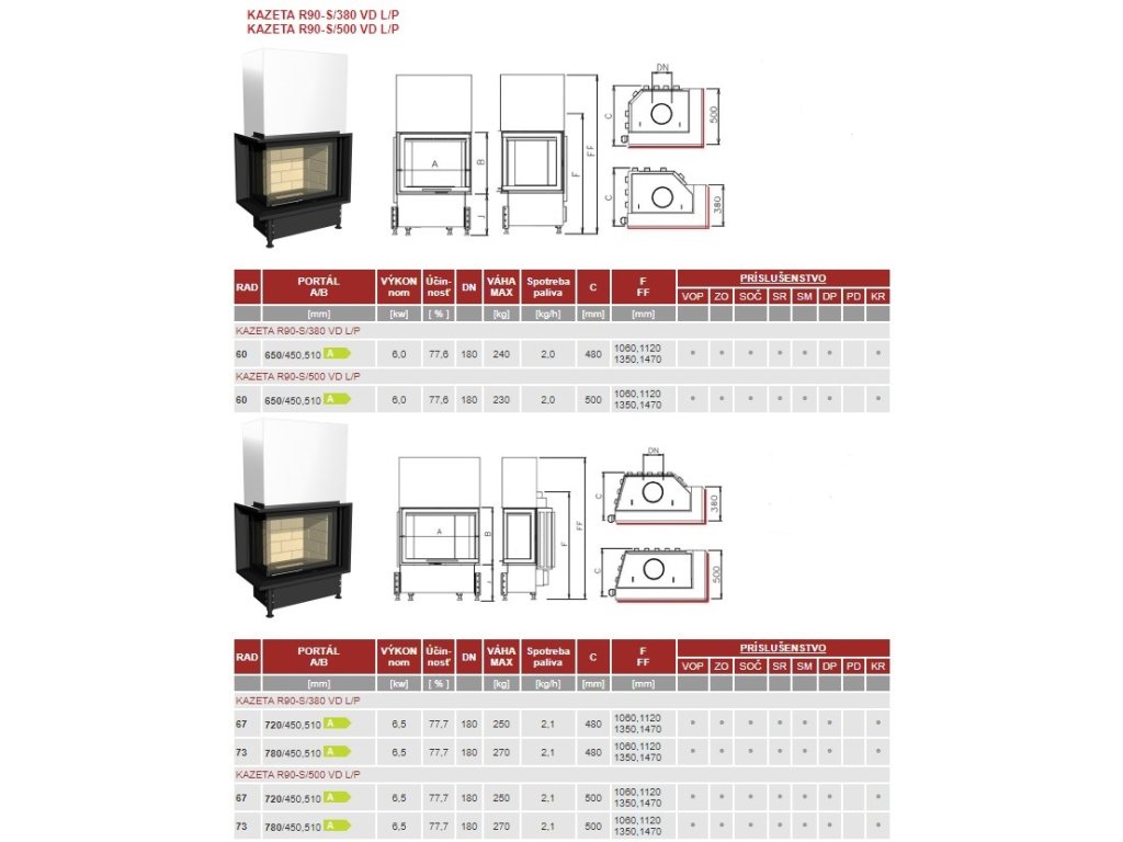 Kobok Kazeta R90-S/500 73 VD780/450 rohové presklenie - výsuvné dvierka