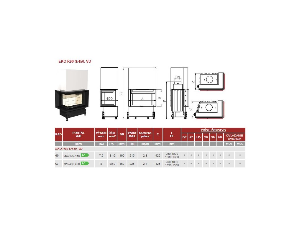 Kobok EKO R90-S/450 60 VD650/400 rohové presklenie - výsuvné dvierka