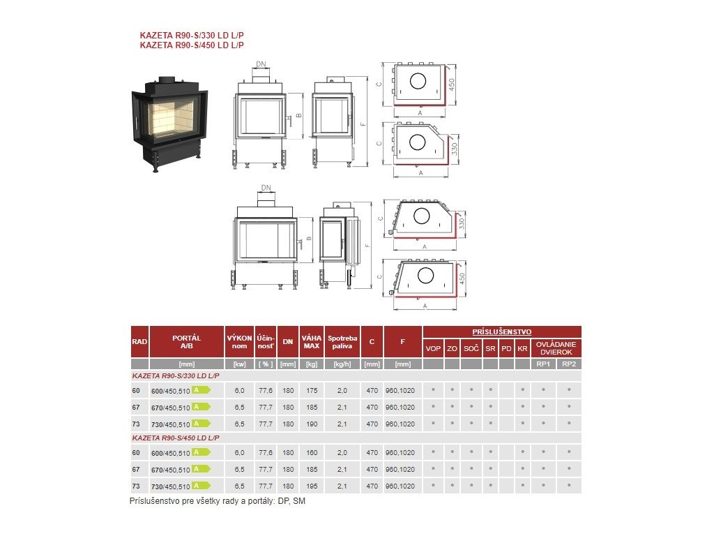 Kobok Kazeta R90-S/450 73 LD 730/450 rohové presklenie - dvierka (jednokrídlové) - otvárané do strany