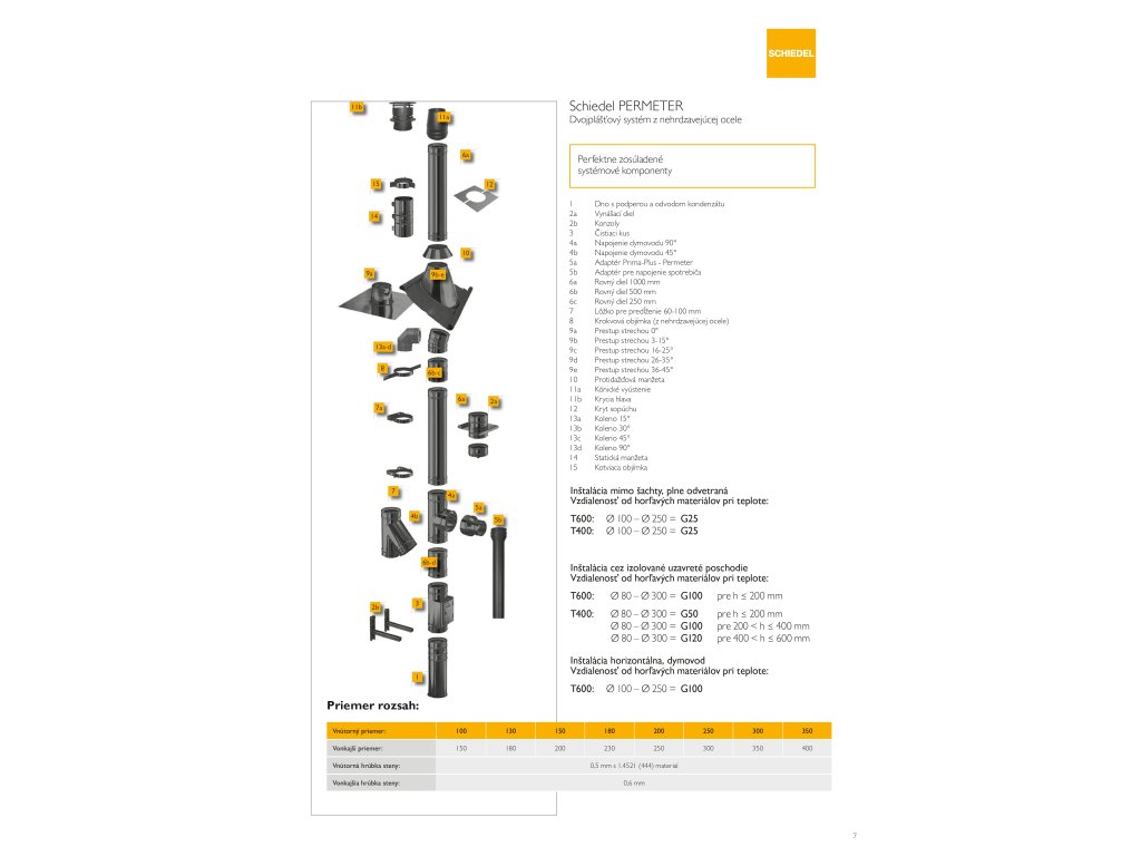 Schiedel PERMETER – dvojplášťový - trojvrstvový kovový systémový komín pre pece, krby a kotly na tuhé palivá.