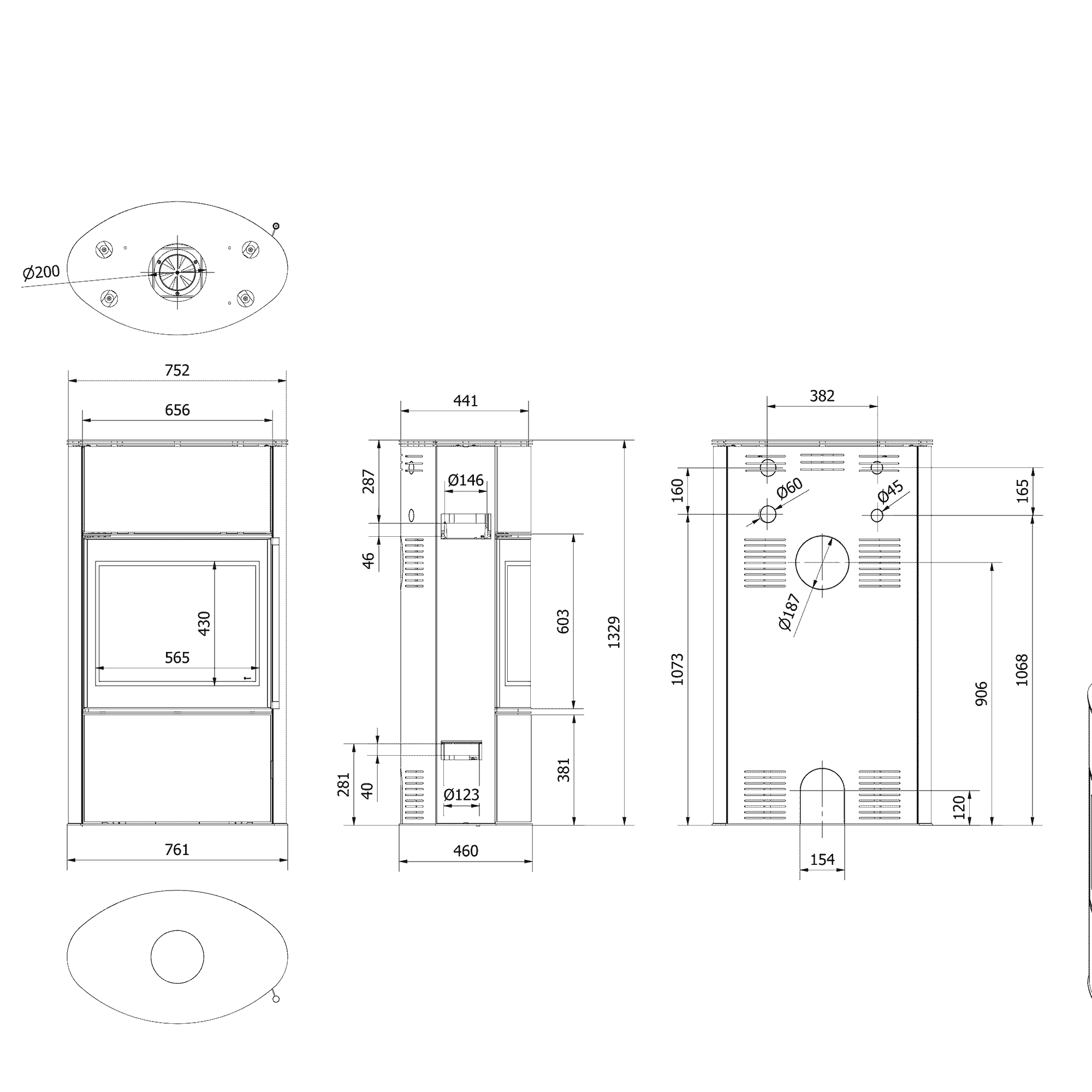 Zákazník si môže zvoliť aj prevedenie hornej dosky – oceľové alebo s dekoratívnou akumulačnou keramikou. Vnútro spaľovacej komory je vyložené akumulačným materiálom TERMOTEC, ktorý je dostupný v bielej alebo čiernej farbe. Tento materiál zvyšuje tepelnú účinnosť a zároveň dotvára celkový vzhľad spotrebiča.