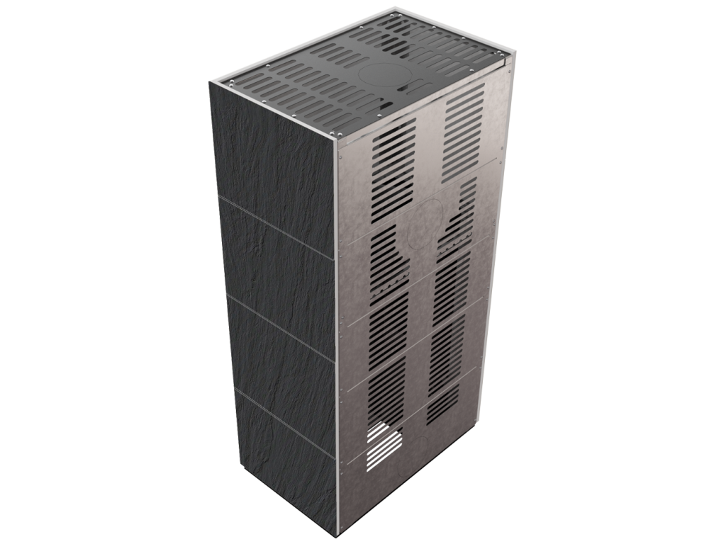 FLOKI BOX kombinuje kvalitnú krbovú vložku FLOKI s hotovou modulárnou obstavbou z oceľovej konštrukcie a panelov zo spekaného kameňa (kremenný sinter). Vďaka minimalistickému dizajnu sa perfektne hodí do moderných aj klasických interiérov a stáva sa výrazným prvkom každej miestnosti.