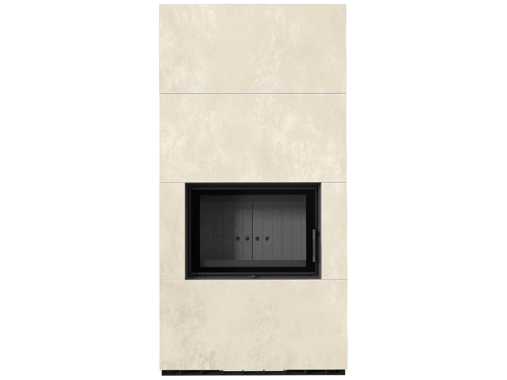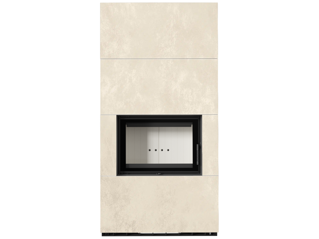 Kratki FLOKI 8 Box oceľová krbová vložka, kamenné opláštenie BIANCO OXIDE, rovné presklenie, ohnisko termotec