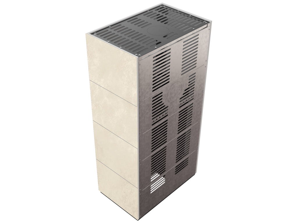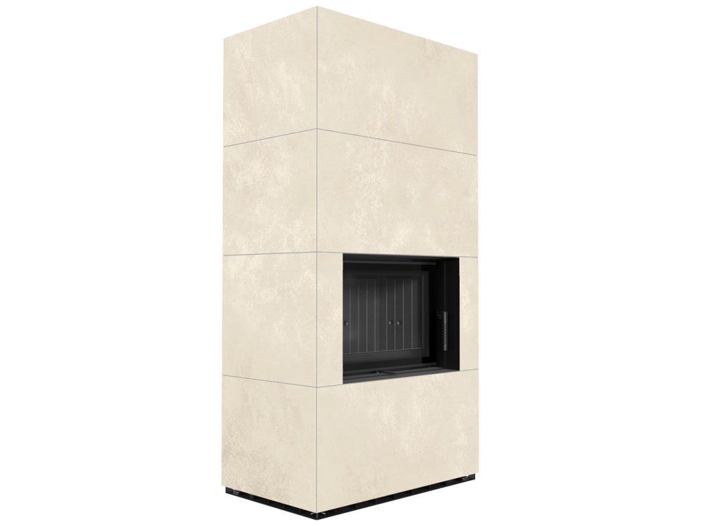 FLOKI BOX kombinuje kvalitnú krbovú vložku FLOKI s hotovou modulárnou obstavbou z oceľovej konštrukcie a panelov zo spekaného kameňa (kremenný sinter). Vďaka minimalistickému dizajnu sa perfektne hodí do moderných aj klasických interiérov a stáva sa výrazným prvkom každej miestnosti.