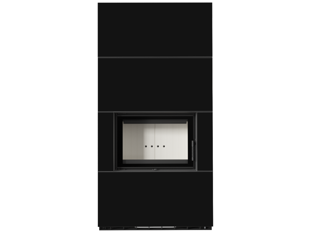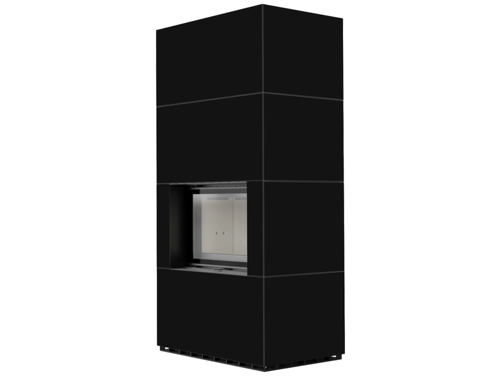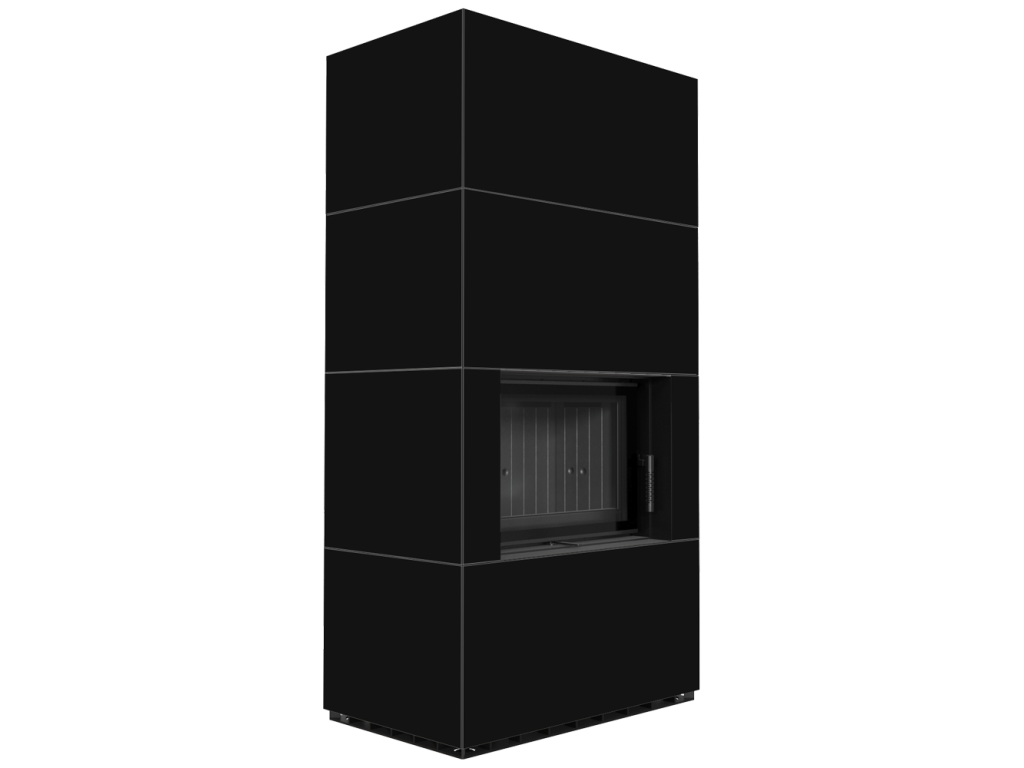 Kratki FLOKI 8 Box oceľová krbová vložka, kamenné opláštenie NERO ASSOLUTO, rovné presklenie, ohnisko termotec