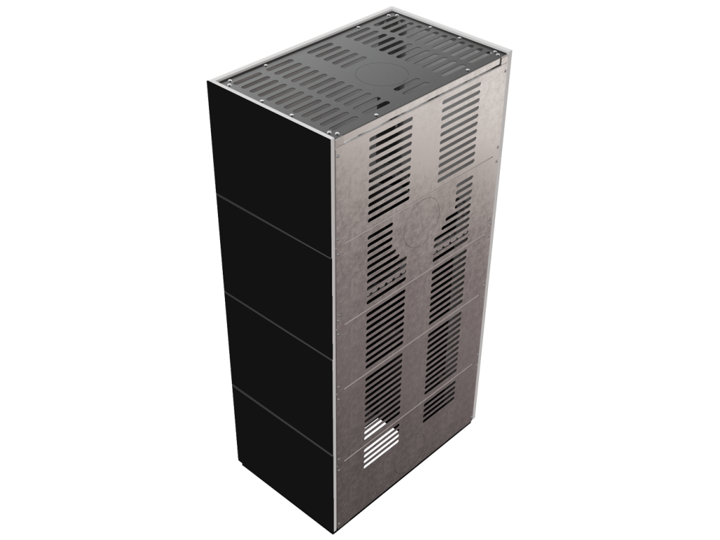 FLOKI BOX kombinuje kvalitnú krbovú vložku FLOKI s hotovou modulárnou obstavbou z oceľovej konštrukcie a panelov zo spekaného kameňa (kremenný sinter). Vďaka minimalistickému dizajnu sa perfektne hodí do moderných aj klasických interiérov a stáva sa výrazným prvkom každej miestnosti.