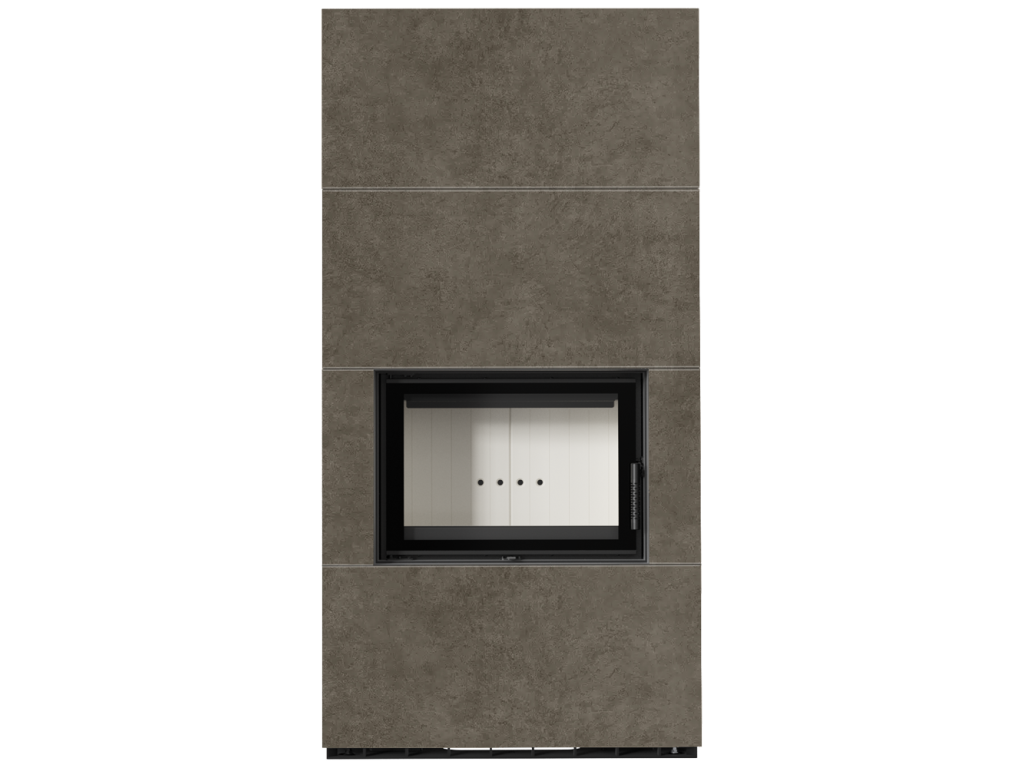 Kratki FLOKI 8 Box oceľová krbová vložka, kamenné opláštenie PIOMBO FOKOS, rovné presklenie, ohnisko termotec