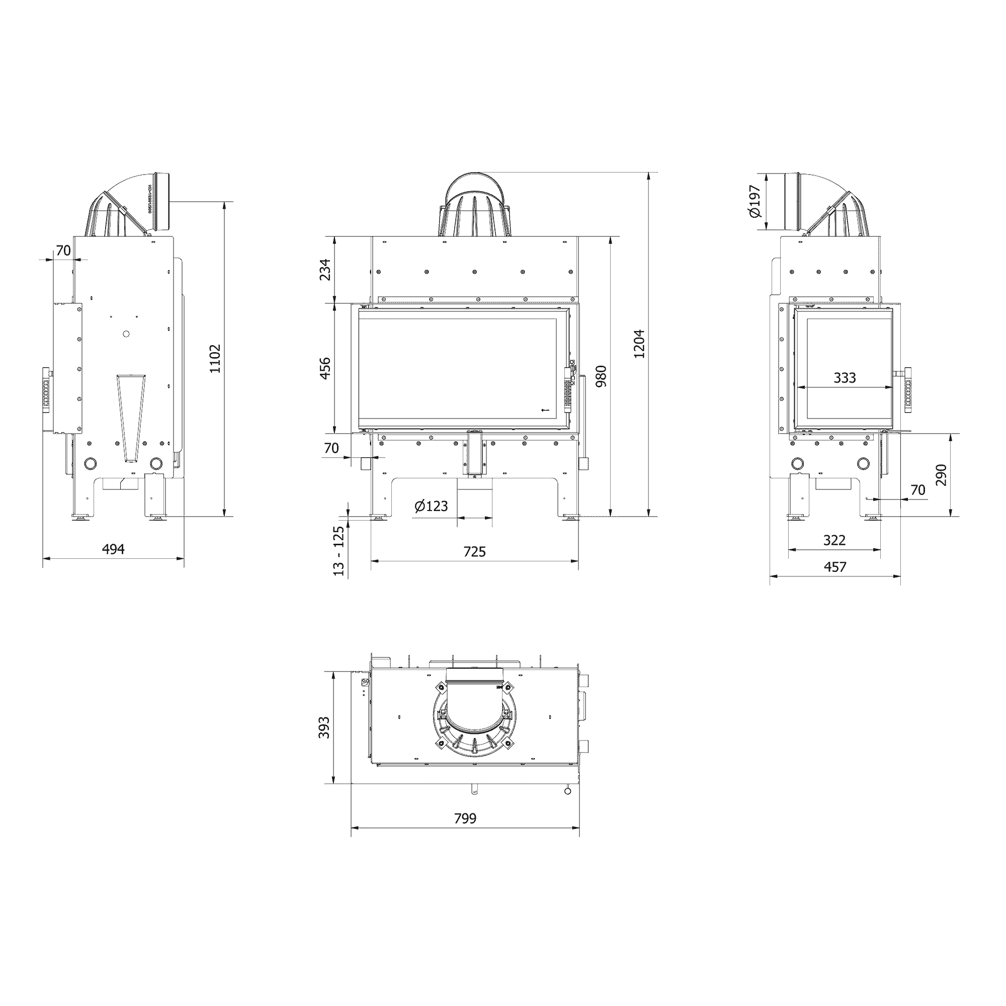 Táto dizajnová krbová vložka s bočným sklom zaujme elegantným vzhľadom a dekoratívnym presklením, ktoré opticky zväčšuje prednú časť spotrebiča a ešte viac zvýrazňuje pohľad na oheň. V kombinácii s bočným presklením vytvára moderný a luxusný dojem, ktorý výborne doplní každý súčasný interiér.