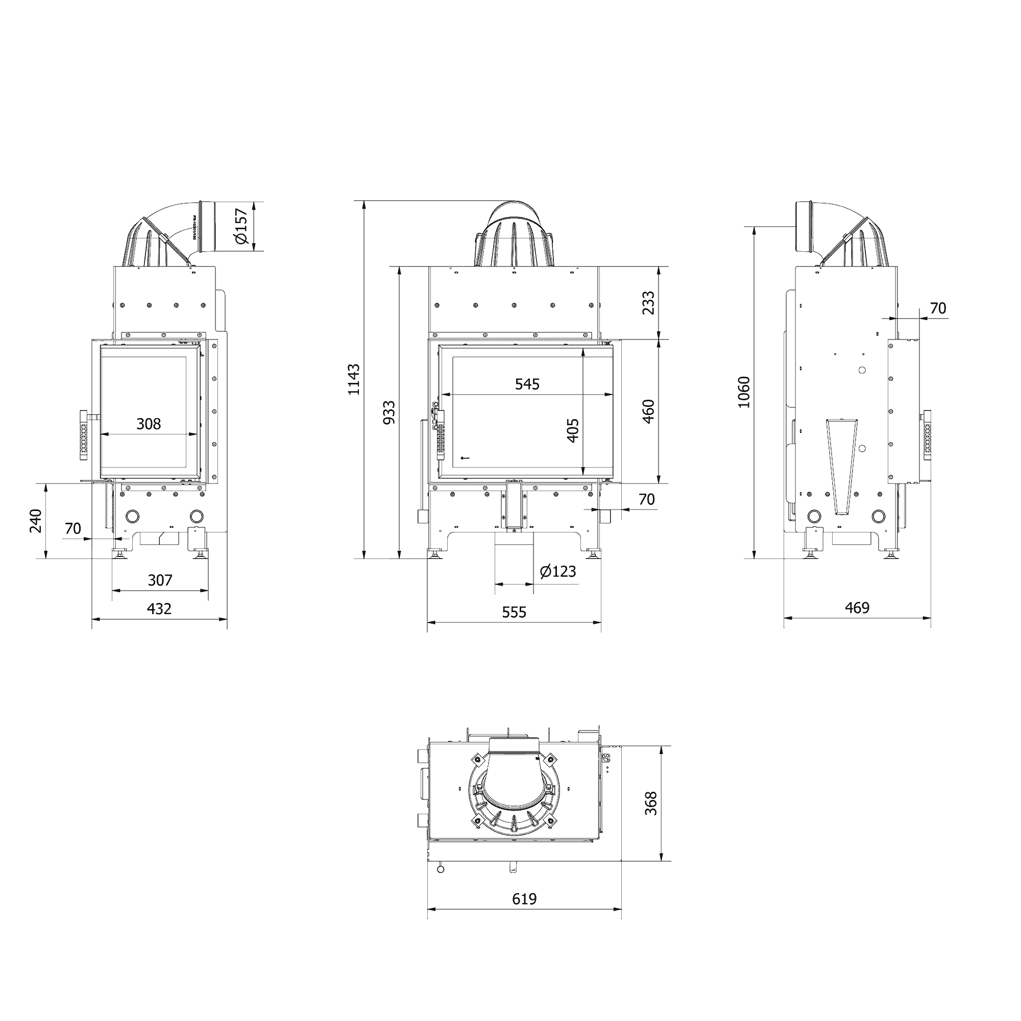 Praktickou výhodou sú aj nastaviteľné nožičky, ktoré umožňujú jednoduché vyrovnanie vložky. Model je vybavený aj nastaviteľným vývodom spalín, vďaka čomu je možné jednoduchšie prispôsobiť napojenie na komín bez potreby ďalších kolien. To zjednodušuje montáž a znižuje nároky na inštaláciu.