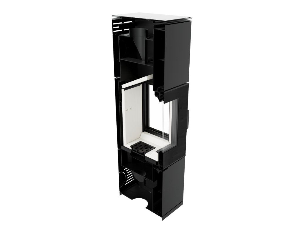 Vzduch je do kachlí privádzaný zvonka cez vstavaný prívod vzduchu, ktorý je možné napojiť zozadu alebo zospodu. Ovládanie prebieha pomocou jednej klapky umiestnenej pod dvierkami, čo zjednodušuje obsluhu a eliminuje chyby pri používaní.