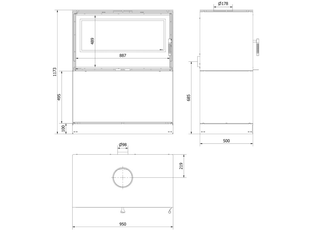 Kratki Kari 95 s podstavcom, oceľ čierna, ohnisko Termotec