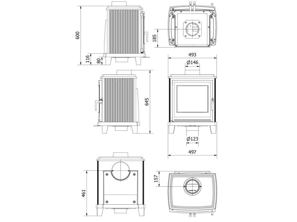 Praktický výsuvný popolník výrazne uľahčuje údržbu kachlí a ochranná zábrana zabraňuje vypadávaniu dreva pri prikladaní. Systém studenej kľučky umožňuje bezpečnú manipuláciu s dvierkami bez rizika popálenia, čo oceníte pri každodennej obsluhe.