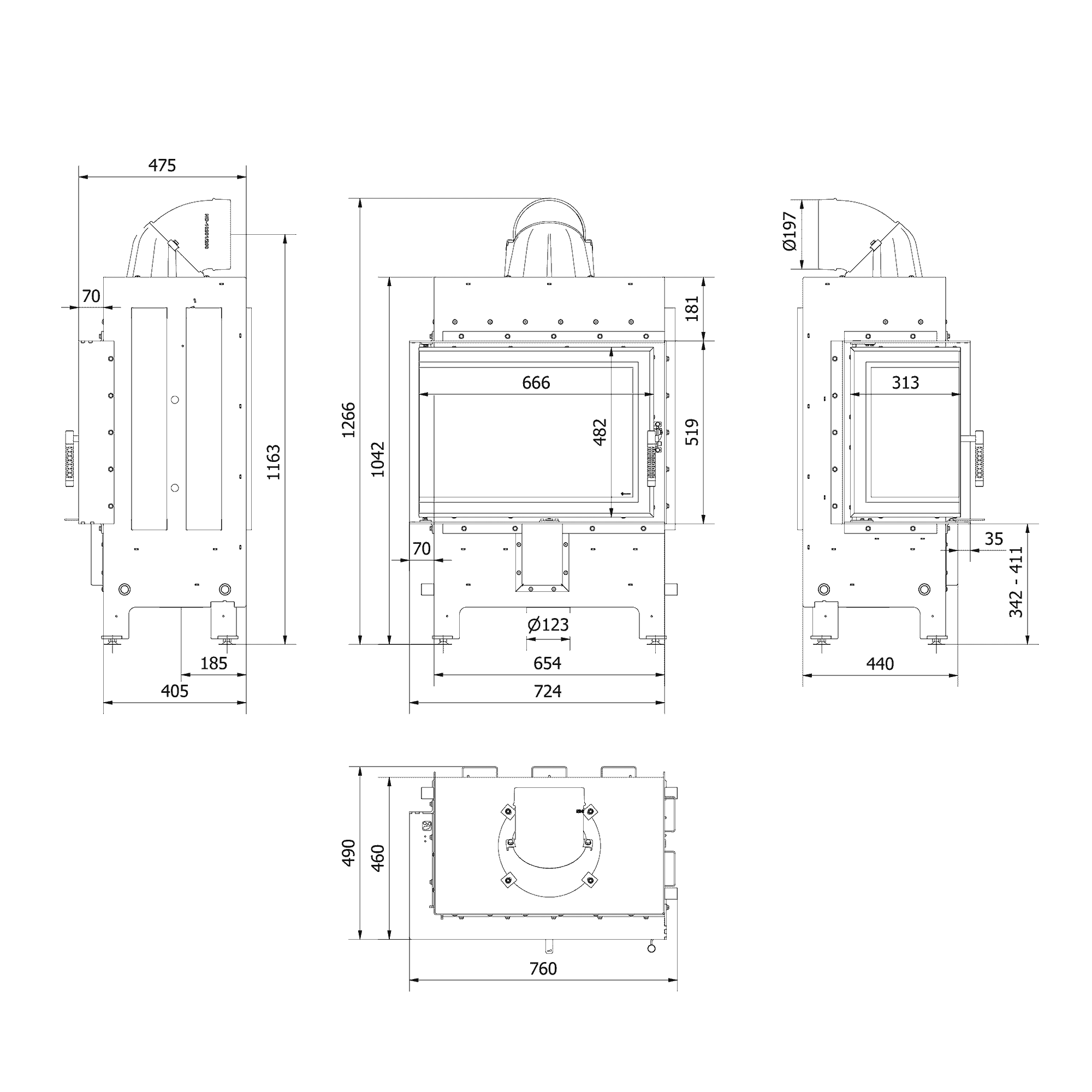 Praktickým riešením je aj prehĺbená spodná doska, ktorá umožňuje vložiť väčšie množstvo dreva a zároveň zabraňuje vypadávaniu popola mimo spaľovaciu komoru. Výsledkom je vyšší komfort pri kúrení a efektívnejšie využitie energie.