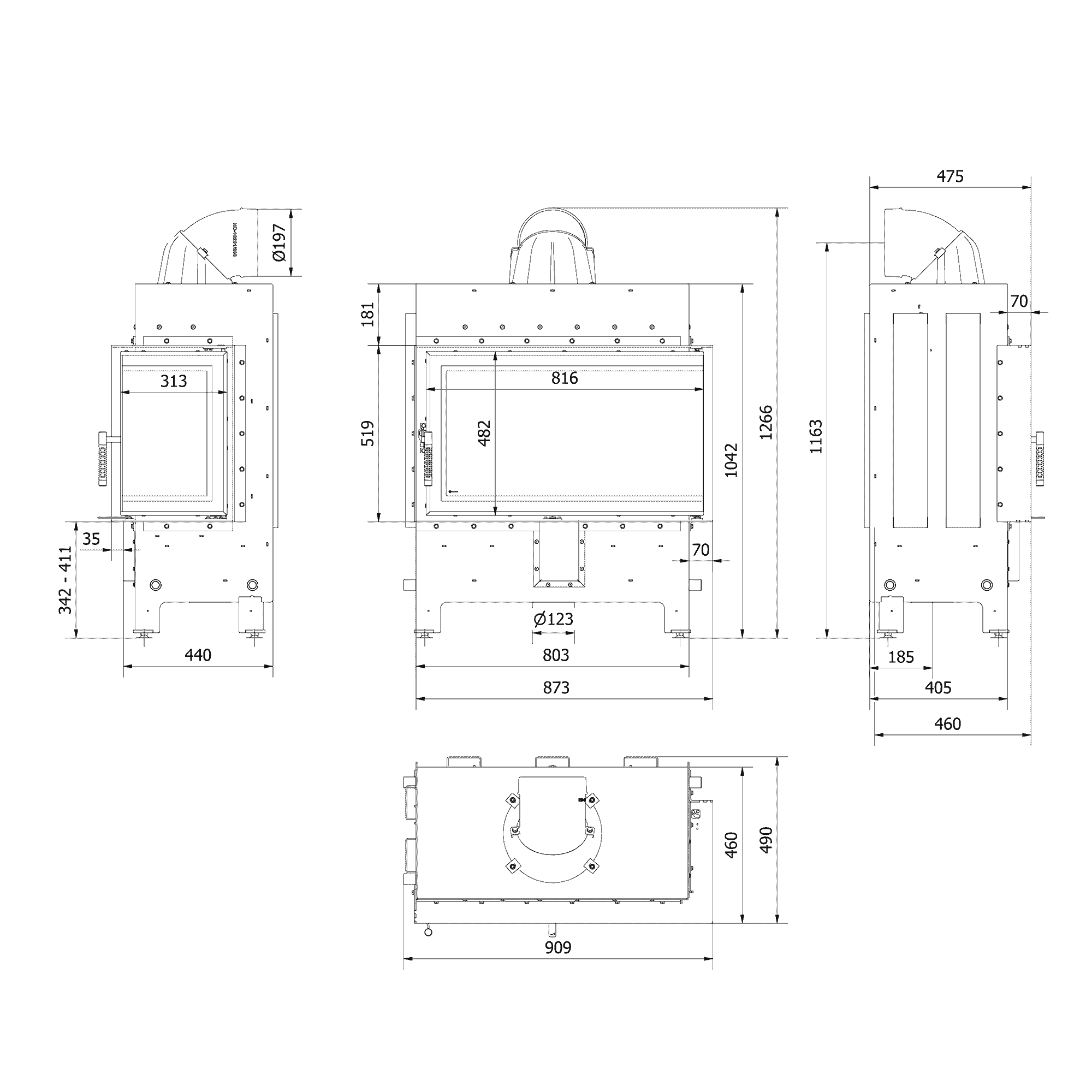 Praktickým riešením je aj prehĺbená spodná doska, ktorá umožňuje vložiť väčšie množstvo dreva a zároveň zabraňuje vypadávaniu popola mimo spaľovaciu komoru. Výsledkom je vyšší komfort pri kúrení a efektívnejšie využitie energie.