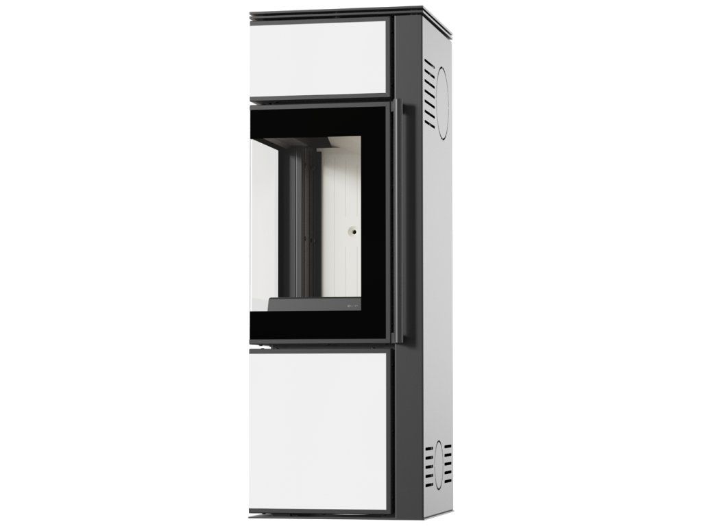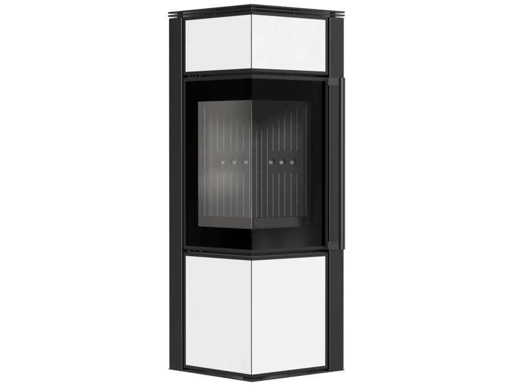 KRATKI TORA – moderné oceľové krbové kachle s bielym sklom a rohovým presklením
