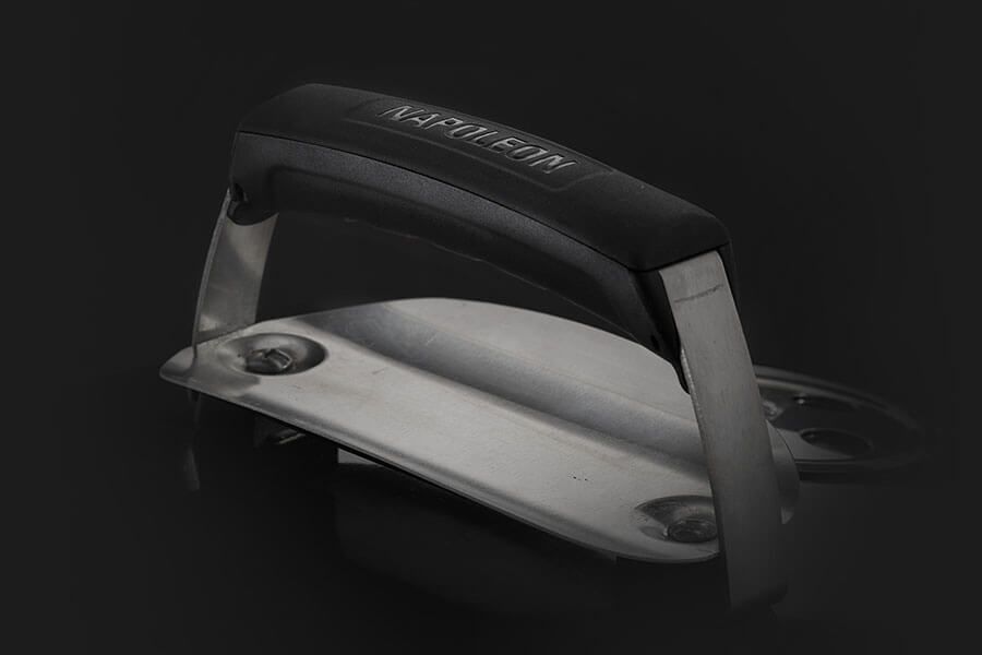 Praktické madlo so štítom proti sálavému teplu umožňuje bezpečné a pohodlné zdvíhanie rozpáleného veka počas grilovania.