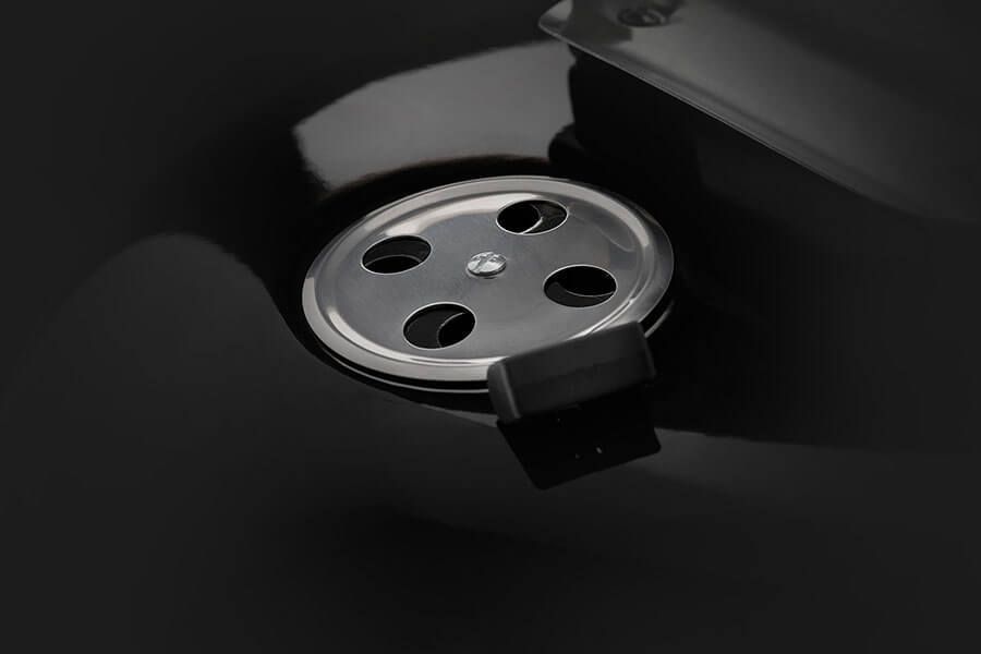 Nerezové vzduchové otvory umožňujú jednoduchú a presnú reguláciu prúdenia vzduchu, vďaka čomu máte lepšiu kontrolu nad teplotou pri grilovaní aj údení.