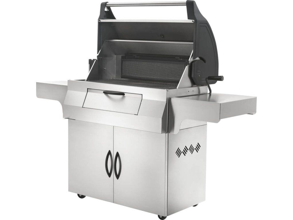 Robustná konštrukcia z kvalitnej nerezovej ocele zaručuje dlhú životnosť, vysokú odolnosť voči poveternostným podmienkam a elegantný vzhľad, ktorý sa hodí do každej záhrady či exteriérovej kuchyne. Praktické predné dvierka na prikladanie dreveného uhlia umožňujú pohodlné dopĺňanie paliva aj počas grilovania bez zbytočného prerušovania prípravy jedál.