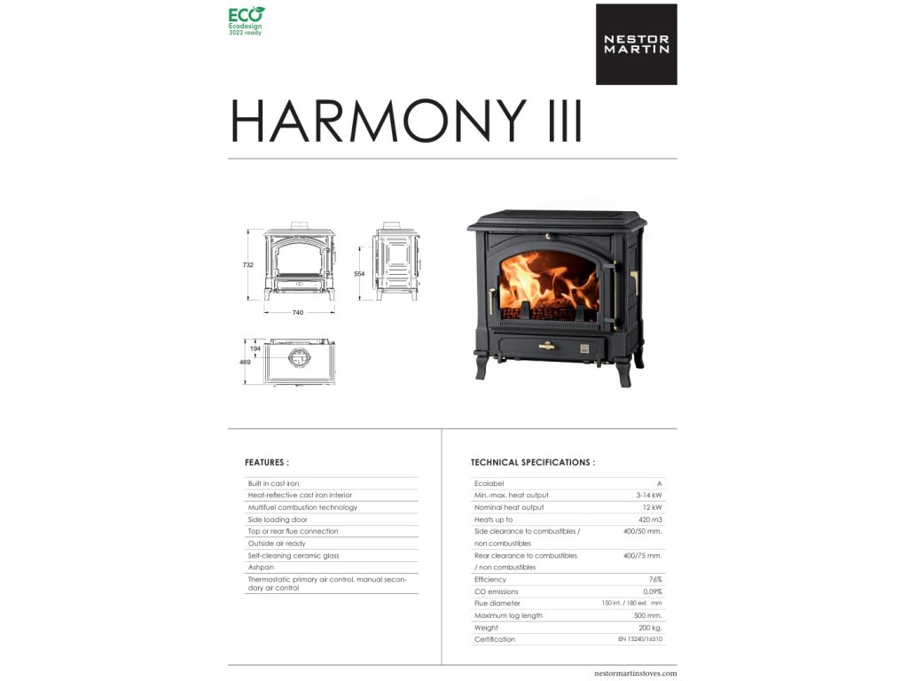Kolekcia Harmony prináša funkčné a cenovo dostupné riešenie, ktoré spája jednoduchú obsluhu, vysokú spoľahlivosť a nadčasový dizajn. Model Harmony I je vyrobený kompletne z liatiny, vybavený veľkým keramickým sklom, bočnými dvierkami pre prikladanie väčších polien a termostatom na reguláciu teploty.