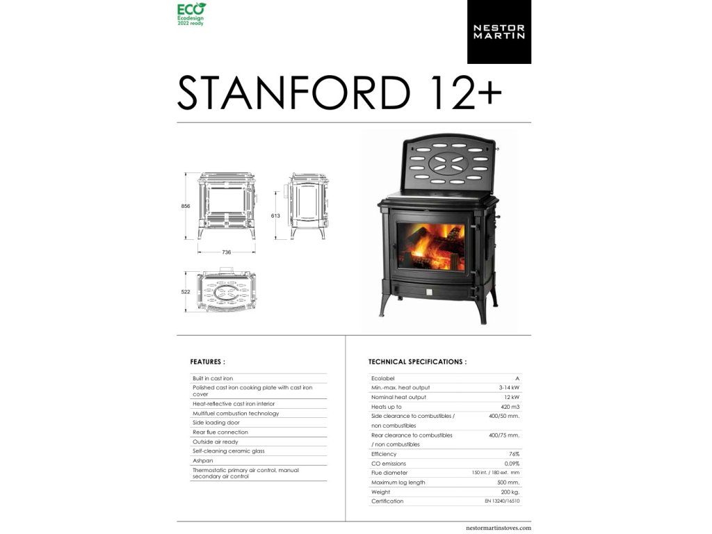 Model Stanford 12+ kombinuje tradičný dizajn, kvalitnú liatinovú konštrukciu a praktické využitie. Okrem komfortného vykurovania ponúka aj leštenú liatinovú varnú platňu, ktorá umožňuje varenie alebo ohrievanie jedál priamo na kachliach. Robustné spracovanie a nadčasový vzhľad zaručujú, že vám tieto kachle budú slúžiť mnoho rokov.