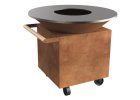 OFYR 75 Corten – kompaktný prémiový gril a ohnisko na terasu a do malej záhrady. Varenie à la plancha, Corten oceľ, celoročné použitie, pre 4–6 osôb.