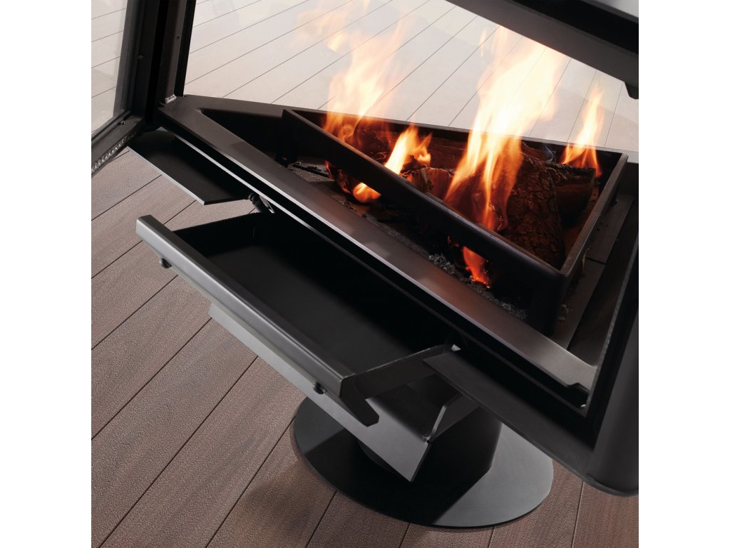 360° výhľad na oheň – Veľkoplošné sklenené dvierka umožňujú fascinujúci pohľad na plamene zo všetkých strán.