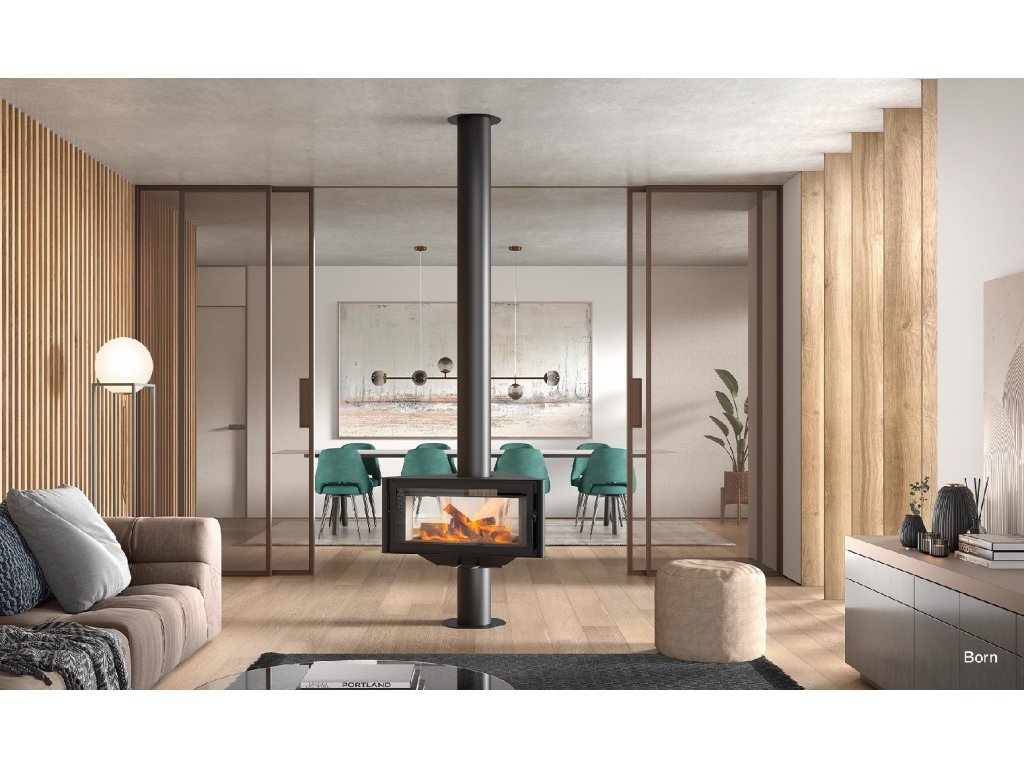 ROCAL Born voľne stojace centrálne umiestnenie, presklenie a otváranie krbových dverí z troch strán
