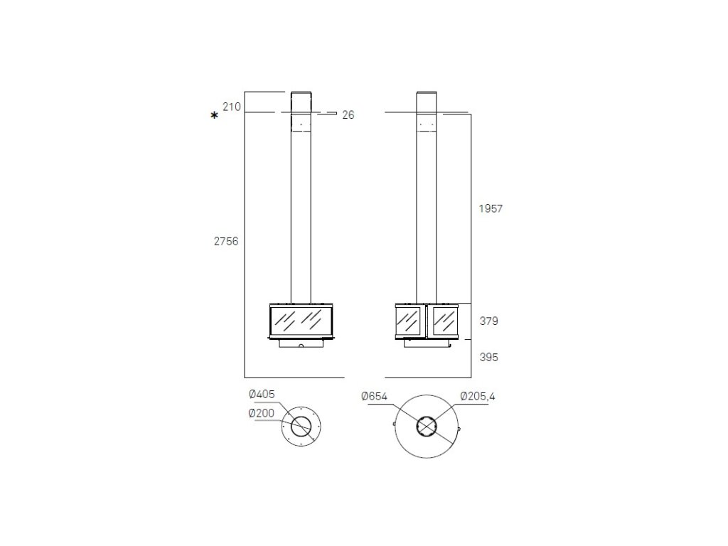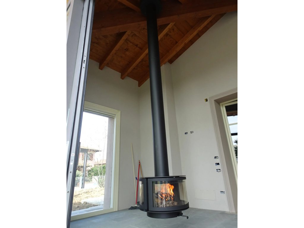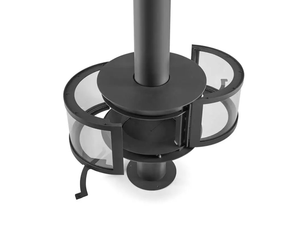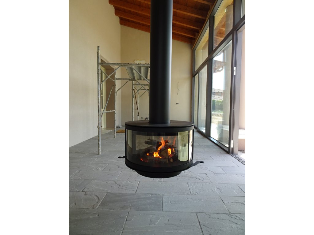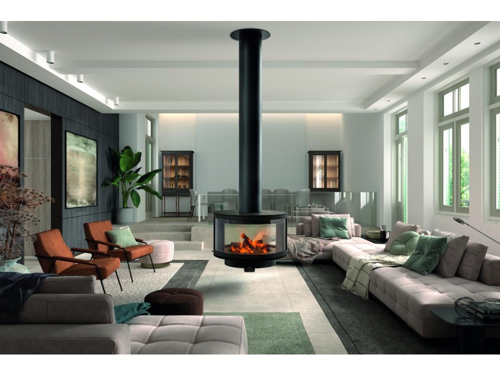 Závesná konštrukcia – Krb je upevnený k stropu, čím pôsobí ľahko a vzdušne, zároveň však dodáva priestoru exkluzívny vzhľad.