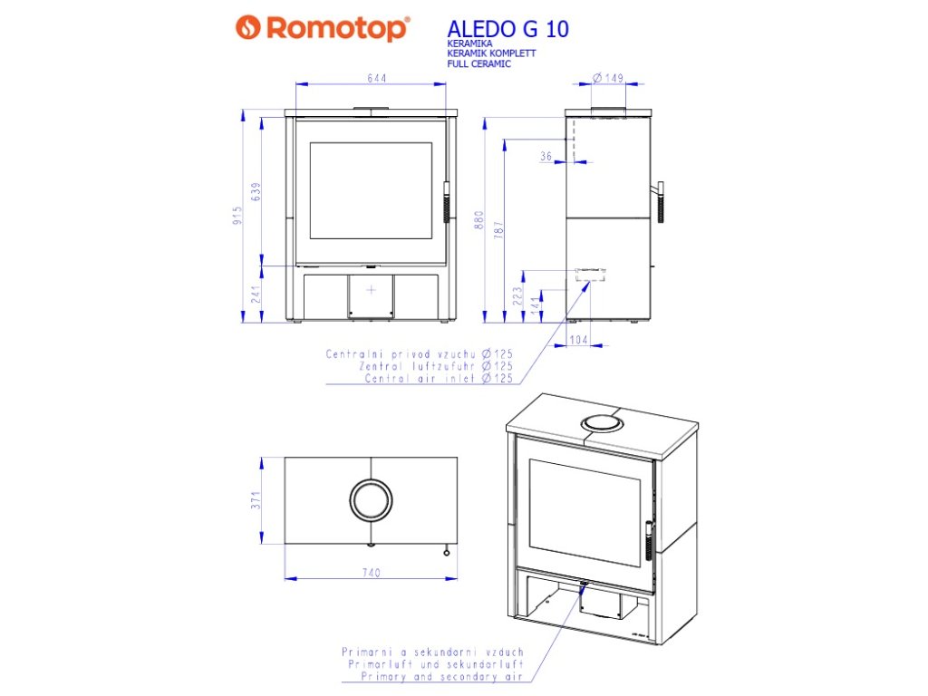 Romotop ALEDO G keramika je moderné krbové zariadenie, ktoré kombinuje elegantný dizajn s technológiou efektívneho spaľovania. Medzi jeho hlavné vlastnosti patria:
