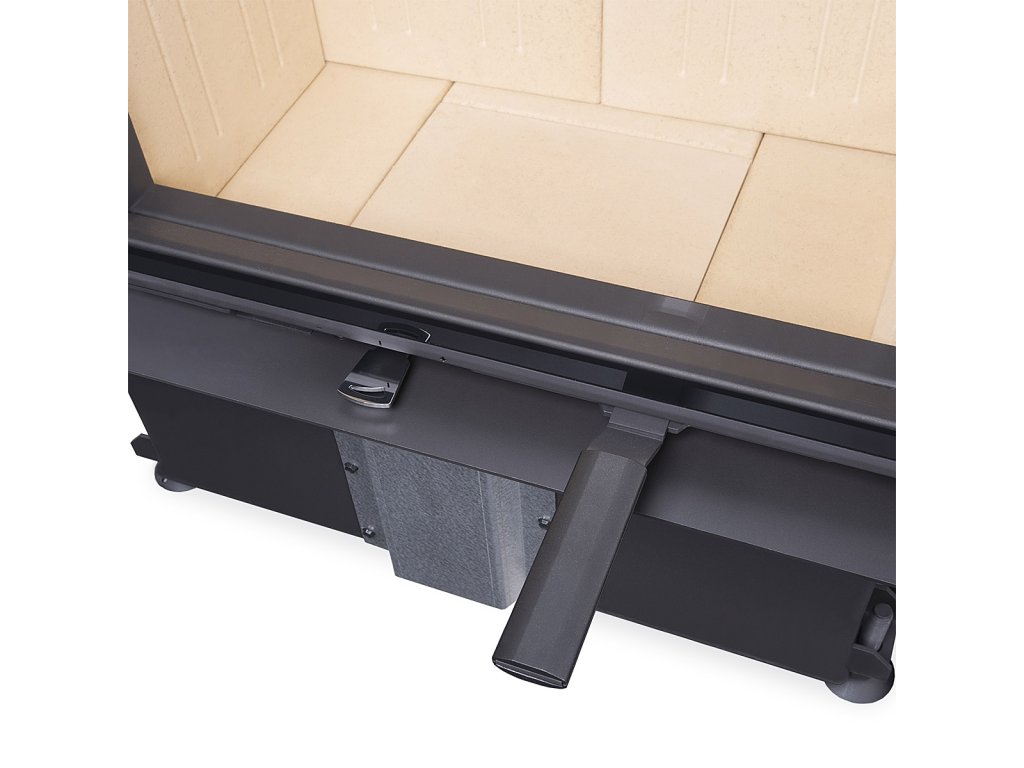 Vysoké predné presklenie s dvojitým sklom osadeným v pevnom ráme ponúka nádherný výhľad na plamene a zároveň umožňuje použitie vložky v akumulačnej aj konvekčnej obstavbe. Dômyselný systém výsuvu dvierok SILENT LIFT zabezpečuje tichý a plynulý chod, pričom dvierka sa ovládajú odnímateľnou kľučkou s možnosťou výmeny za pevnú.